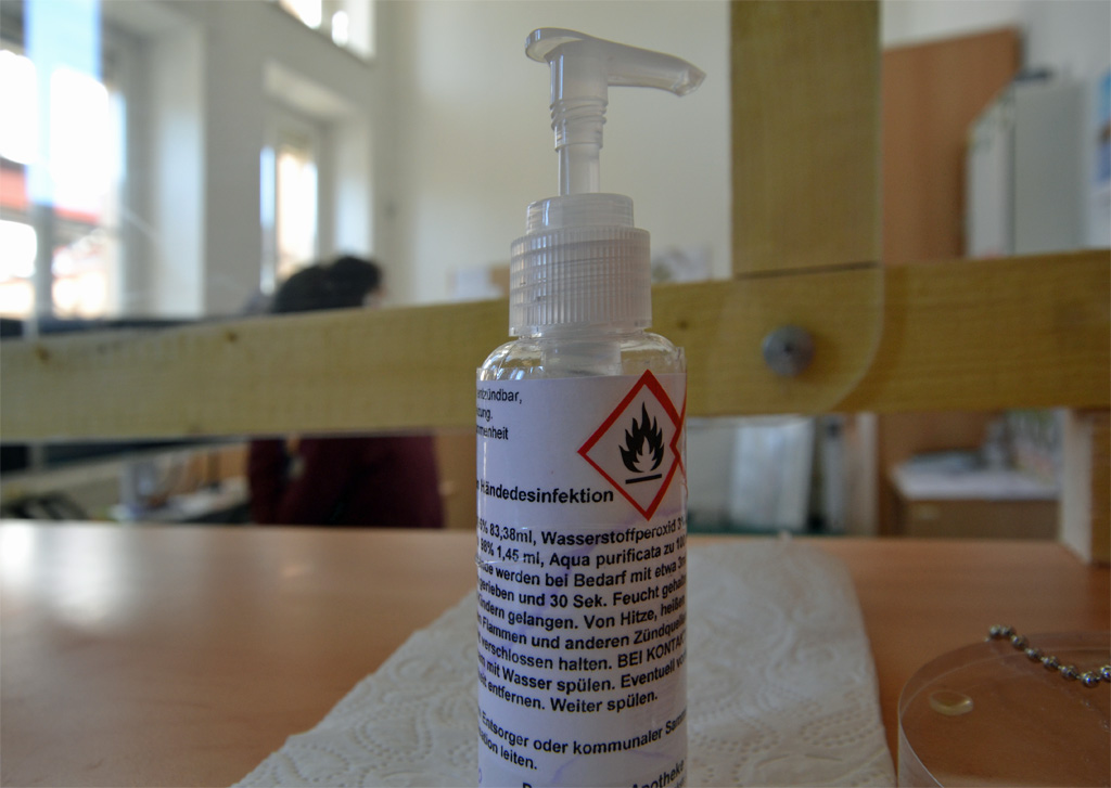 Zwischendurch kommen immer wieder Mitarbeiter an die Plexiglasscheibe. Um die Schlüssel für einen Dienstwagen zu holen, Unterlagen, Post, eine Flasche Wasser oder Wohnungsschlüssel. Dazu hin und wieder ein kurzer Plausch, was es Neues gibt. Vieles ist wie immer. Doch die Boxen mit den Gummihandschuhen in verschiedenen Größen gab es früher nicht. Genau wie das Fläschchen mit dem Desinfektionsmittel.