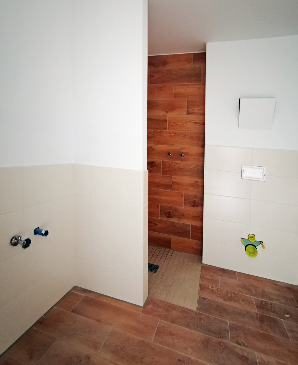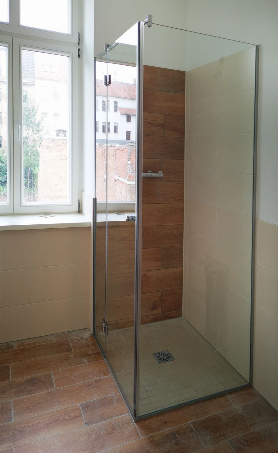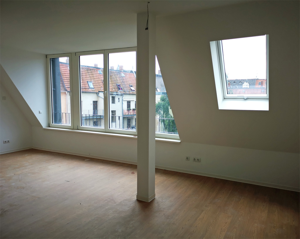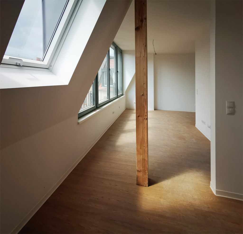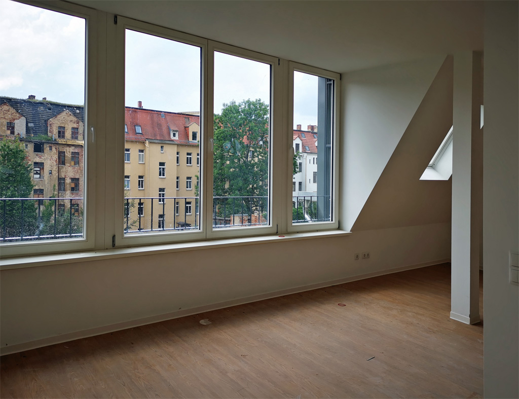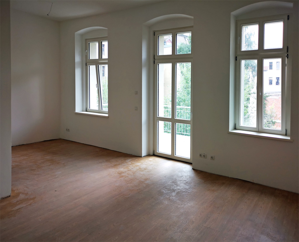 Fast kann man schon von Endspurt sprechen. In den Häusern Leipziger Straße 19/20/20a beginnen die letzten Wochen ihrer Komplettsanierung. Von draußen ist durch das Gerüst, hinter dem die Arbeiten an den Fassaden laufen, noch nicht viel zu sehen. Drinnen aber sieht es an vielen Stellen schon aus wie ein richtiges Wohnhaus. Viele Bäder sind gefliest, die Türen sind eingebaut. Anfang November soll alles fertig sein. Hier sind ein paar Eindrücke aus verschiedenen Wohnungstypen: