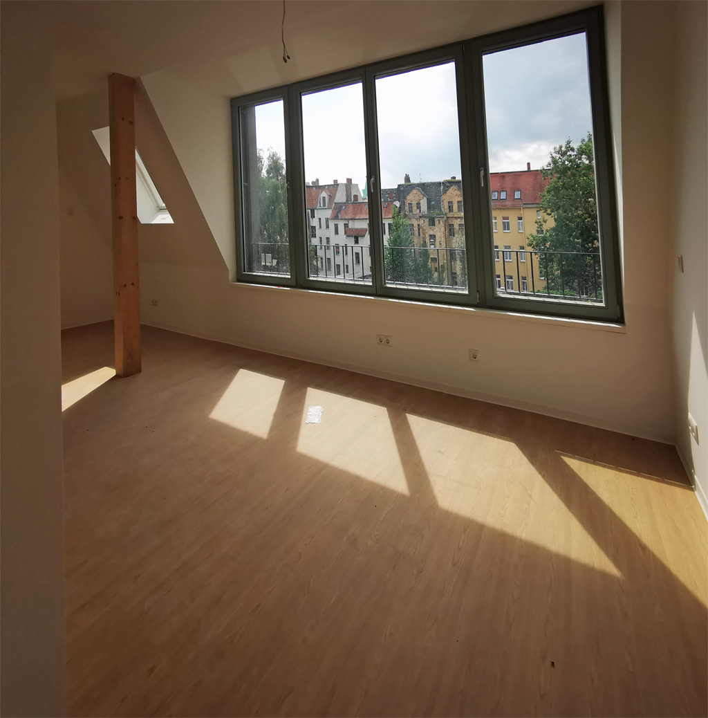 Fast kann man schon von Endspurt sprechen. In den Häusern Leipziger Straße 19/20/20a beginnen die letzten Wochen ihrer Komplettsanierung. Von draußen ist durch das Gerüst, hinter dem die Arbeiten an den Fassaden laufen, noch nicht viel zu sehen. Drinnen aber sieht es an vielen Stellen schon aus wie ein richtiges Wohnhaus. Viele Bäder sind gefliest, die Türen sind eingebaut. Anfang November soll alles fertig sein. Hier sind ein paar Eindrücke aus verschiedenen Wohnungstypen: