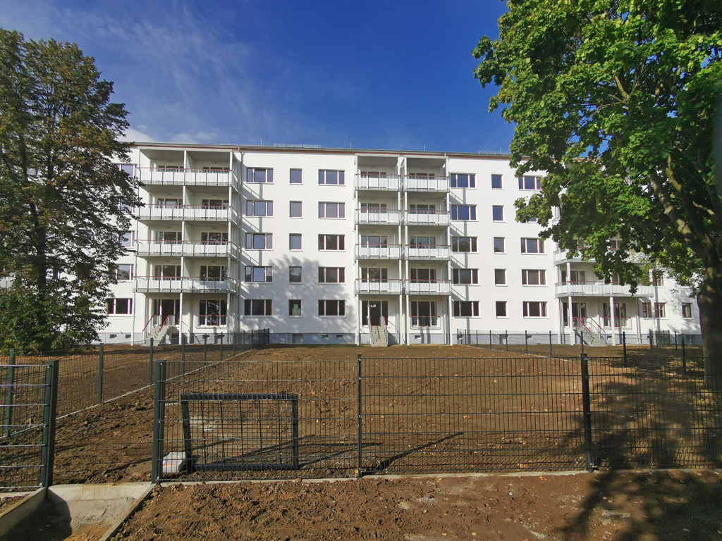 Im Moment braucht es noch etwas Phantasie, hier blühende Landschaften zu sehen. Aber das Anlegen der neuen Mietergärten an der Arthur-Ullrich-Straße 16 ist schon weit vorangeschritten. Alle Erdgeschosswohnungen erhalten solch einen eigenen Garten. In Rauschwalde sind es die ersten Mietergärten, während es in Königshufen schon an einigen unserer Objekte welche gibt. In Rauschwalde sind die Parzellen größer.