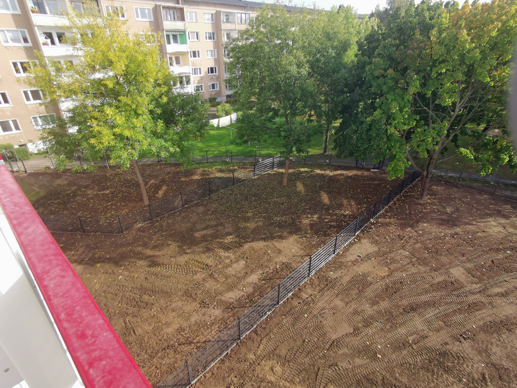 Im Moment braucht es noch etwas Phantasie, hier blühende Landschaften zu sehen. Aber das Anlegen der neuen Mietergärten an der Arthur-Ullrich-Straße 16 ist schon weit vorangeschritten. Alle Erdgeschosswohnungen erhalten solch einen eigenen Garten. In Rauschwalde sind es die ersten Mietergärten, während es in Königshufen schon an einigen unserer Objekte welche gibt. In Rauschwalde sind die Parzellen größer.