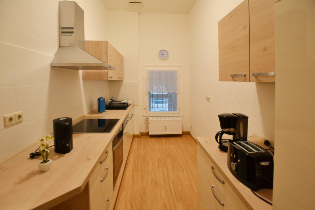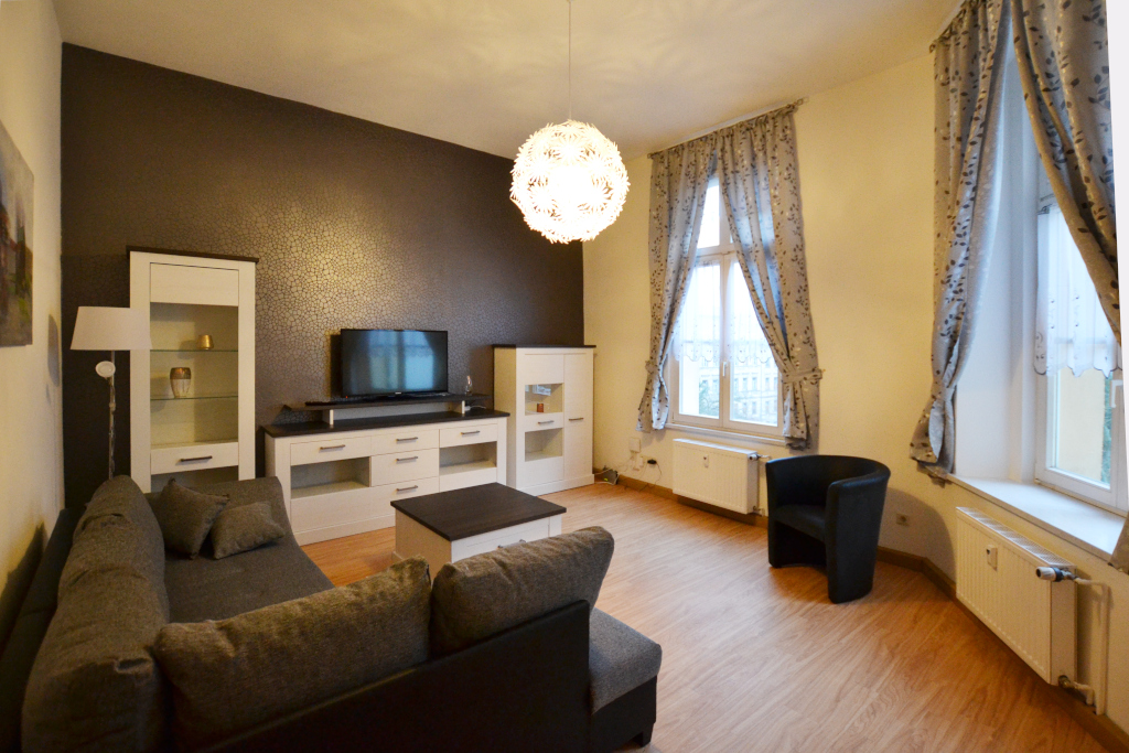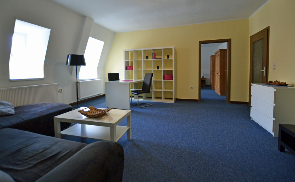 Das sind die Wohnungen für die Probewohner. KommWohnen stellt drei Wohnungen an der James-von-Moltke-Straße zur Verfügung. Wir haben die Zwei- und Dreiraumwohnungen renoviert und komplett möbliert, vom Sofa bis zum Besteck in der Küchenschublade. Damit sich die Teilnehmer des Projekts rundum wohlfühlen. Hier sind ein paar Fotos:
