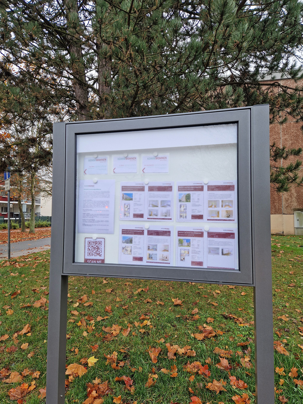Wenn Wohnungssuchende nicht zu den Angeboten kommen, kommen die Angebote eben zu ihnen. Seit ein paar Tagen steht am Boulevard in Königshufen ein KommWohnen-Infokasten. Darin sind aktuelle Vermietungsangebote zu finden. Außerdem gibt es Informationen, unsere Erreichbarkeit sowie für die sofortige Kontaktaufnahme einen QR-Code zu unserer Homepage. Dieser kann gleich vor Ort mit dem Handy gescannt werden.
