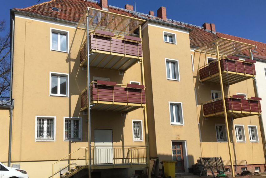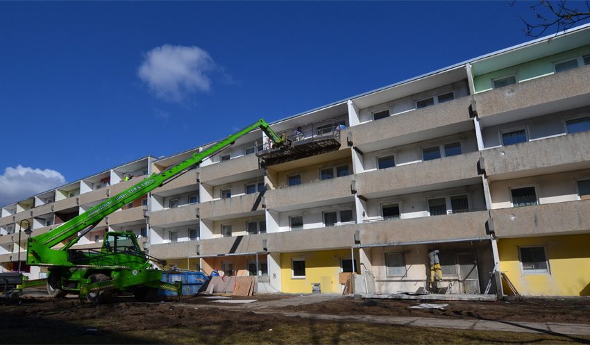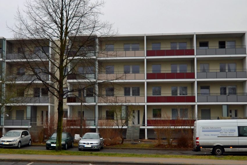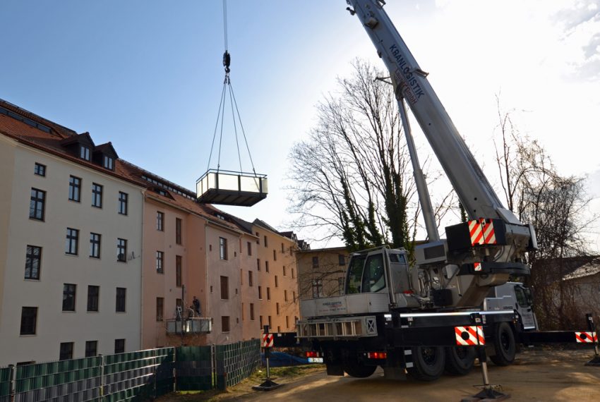 Es dauerte nur wenige Stunden, dann hatte die Hofseite der Heilige-Grab-Straße 10 ein ganz neues Aussehen. Drei der Wohnungen haben jetzt einen XXL-Balkon. Vom Parkplatz an der Hohen Straße aus hat ein mobiler Kran die drei Balkons nacheinander zum Haus hinüber geschwenkt, wo sie montiert wurden. Dadurch haben die derzeit leer stehenden Drei-Raum-Wohnungen, rund 85…