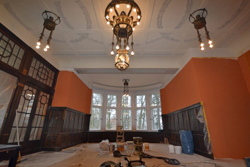 Neuer Glanz für die „Villa Ephraim“ an der Goethestraße! Mitarbeiter unseres Unternehmens sind gerade dort, um kleine Wasser- und Putzschäden in einzelnen Räumen auszubessern. Um den Rest der Ausstattung in der altehrwürdigen Jugendstilvilla zu schützen, mussten vorher einige Planen gespannt werden. Das gibt der Aktion die Anmutung einer großen Baustelle – wie auf den Fotos…
