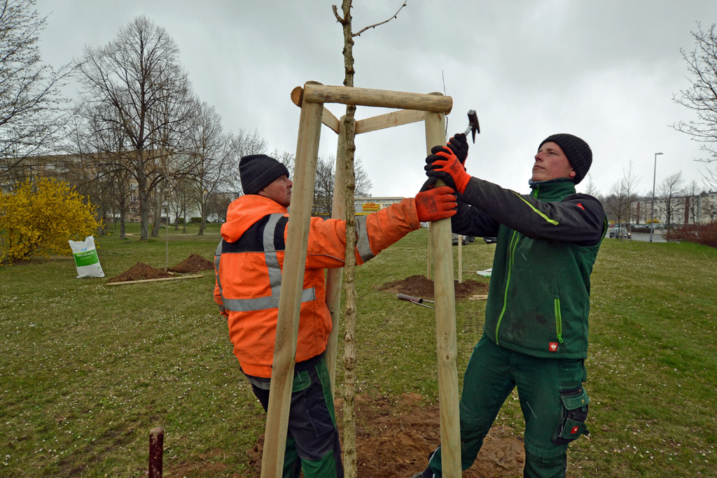 Ab wie vielen Bäumen kann man eigentlich von einem Wald sprechen? Ab 20? Lächerlich. Ab 25? Leicht! Es sind gleich 27 Bäume, die wir diese Woche an der Schlesischen Straße pflanzen lassen. Sie stehen zwischen Nordring und An der Terrasse. Unsere Sachbearbeiterin Garten- und Landschaftsbau, Susanne Krause, hat die Sorten ausgewählt, und die Schöpstaler Firma…