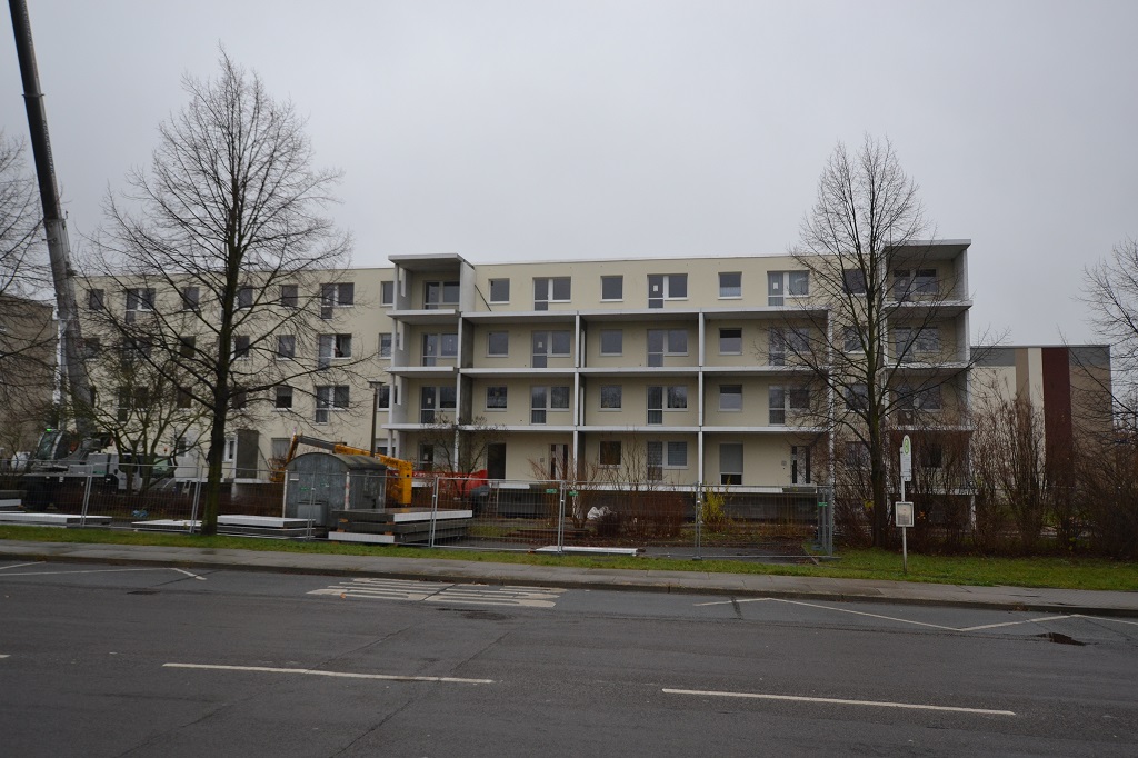 Nach dem Geschossrückbau vor ein paar Jahren ist der Block Lausitzer Straße 32 bis 38 nun energetisch saniert, hat also Wärmedämmung an allen Seiten. Bei der Gelegenheit verschwanden die alten Balkone und werden derzeit  durch größere XXL-Balkone ersetzt. Im kommenden Frühjahr werden auch die Außenanlagen fertig, wo es ein paar Änderungen im Straßenkonzept gibt. Eine direkte Durchfahrt aus Richtung Schlesische Straße ist dann durch Poller versperrt, was zu einer Beruhigung des Verkehrs beiträgt. Zudem sollen weitere Stellplätze enstehen.