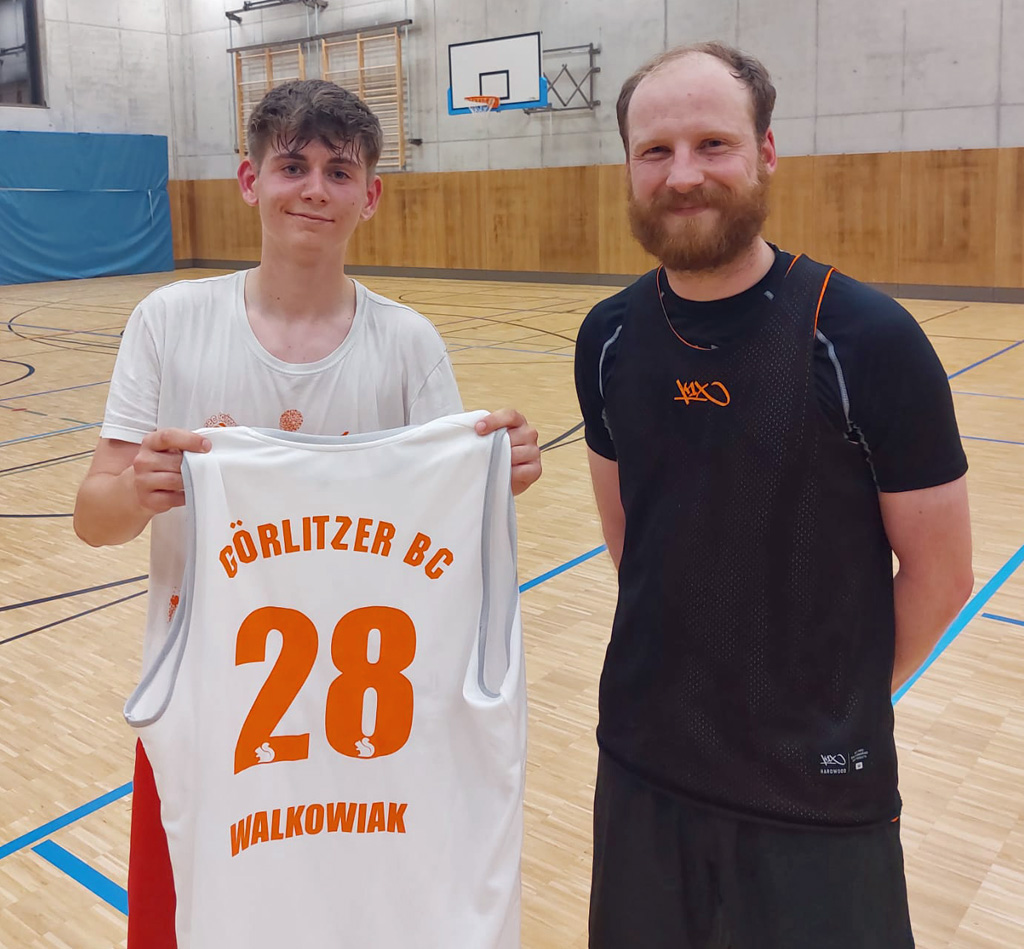 Da war die Freude groß! Endlich ein Trikot der Görlitzer Basketballer Squirrels mit Wunschnummer und eigenem Namen! Maxim Walkowiak hat an unserem Gewinnspiel teilgenommen und hatte Glück mit der Losfee. Direkt aus den Händen von Philipp Schmidt, Vorstandsvorsitzender und Spieler des GBC Squirrels e.V., erhielt er nun das gewonnene Trikot. „Juchhu“, kommentierte der Gewinner, „ich freu mich! Die Nummer 28 wollte ich gern für meine Postleitzahl, die 02828.“