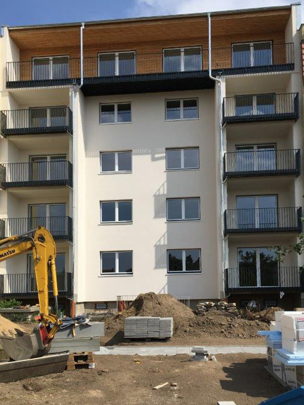 Bald ist die Komplettsanierung geschafft! Jetzt ist die Clara-Zetkin-Straße 47 auch von hinten schön. Die neuen großen XXL-Balkons sind angebaut und fertig. Besonders im Dachgeschoss sind sie ein Highlight – dort reichen sie über gleich zwei Zimmer.
