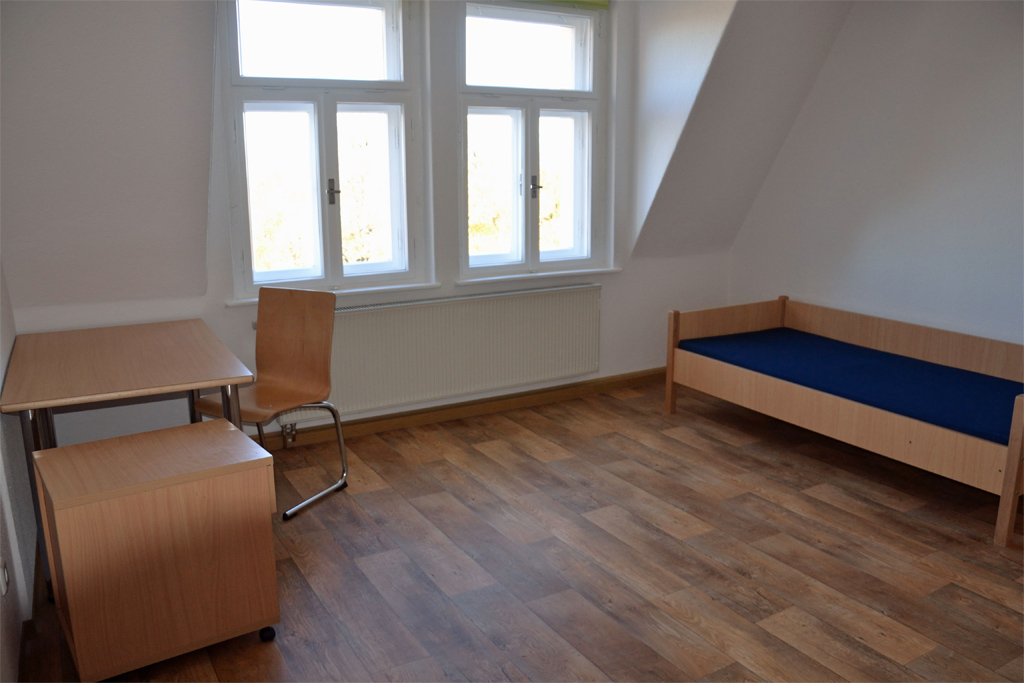 Als dritte Möglichkeit haben wir die Zittauer Straße 4 in der Südstadt. Diese Zimmer, die hauptsächlich von Berufsschülern genutzt werden, befinden sich in Zwei- bis Sechsraumwohnungen. Das WG-Prinzip gilt auch hier.
