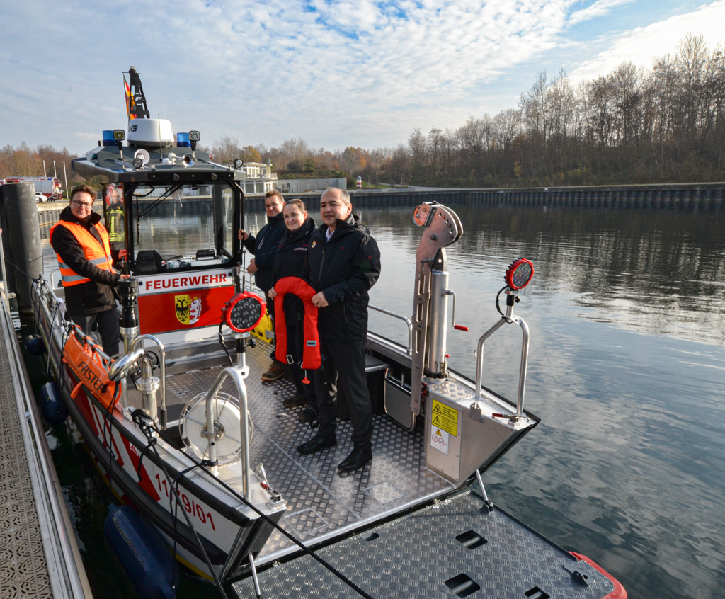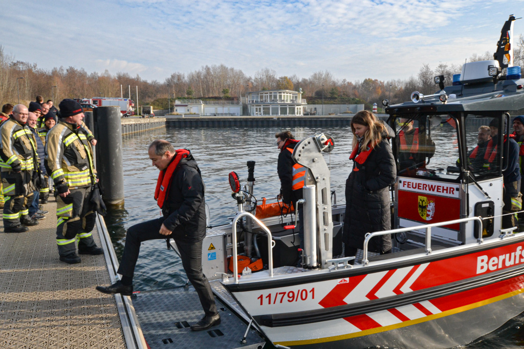 Ein nagelneues Boot der Berufsfeuerwehr Görlitz schmückte am Mittwochvormittag den tristen grauen Novembertag am Hafen Görlitz. Die Kollegen der Feuerwehr durften das Einsatzfahrzeug der besonderen Art von der Lausitzer und Mitteldeutschen Bergbau-Verwaltungsgesellschaft (LMBV) in Empfang nehmen. Das Wasserfahrzeug dient in erster Linie zur Brandbekämpfung, technischen Hilfeleistung und Menschenrettung.