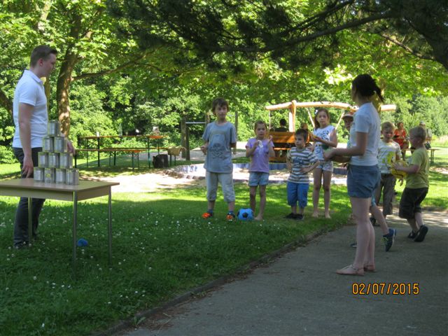 Auch an die Jüngsten wurde gedacht. Eine Mieterin des Wohngebietes stellte einen Knüppelkuchenteig für die Kleinen zur Verfügung. Bei Fußballspielen auf dem nunmehr umzäunten Bolzplatz, Sackhüpfen, Büchsen umwerfen und anderen Kinderspielen – zusammen mit zwei Auszubildenden des Unternehmens – wurde der Nachmittag auch für sie zu einem kleinen Erlebnis.