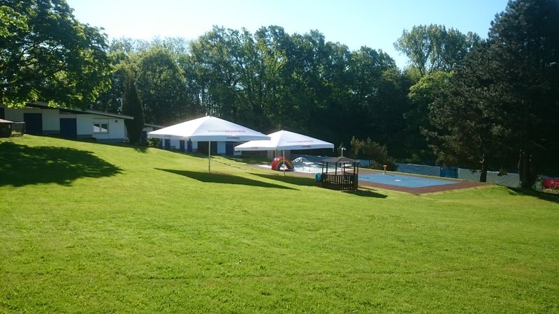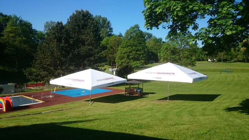 Damit sich junge Familien beim Besuch der im August 2015 neu eröffneten Kindebadelandschaft keinen Sonnenbrand holen, sponsorte die KommWohnen außerdem zwei XXL-Schirme, welche nun seit Mai 2017 Schatten spenden. Wir wünschen dem Verein weiterhin gutes Gelingen bei der Erweiterung des Geländes und allen Besuchern des Helenenbades sonnige Stunden.