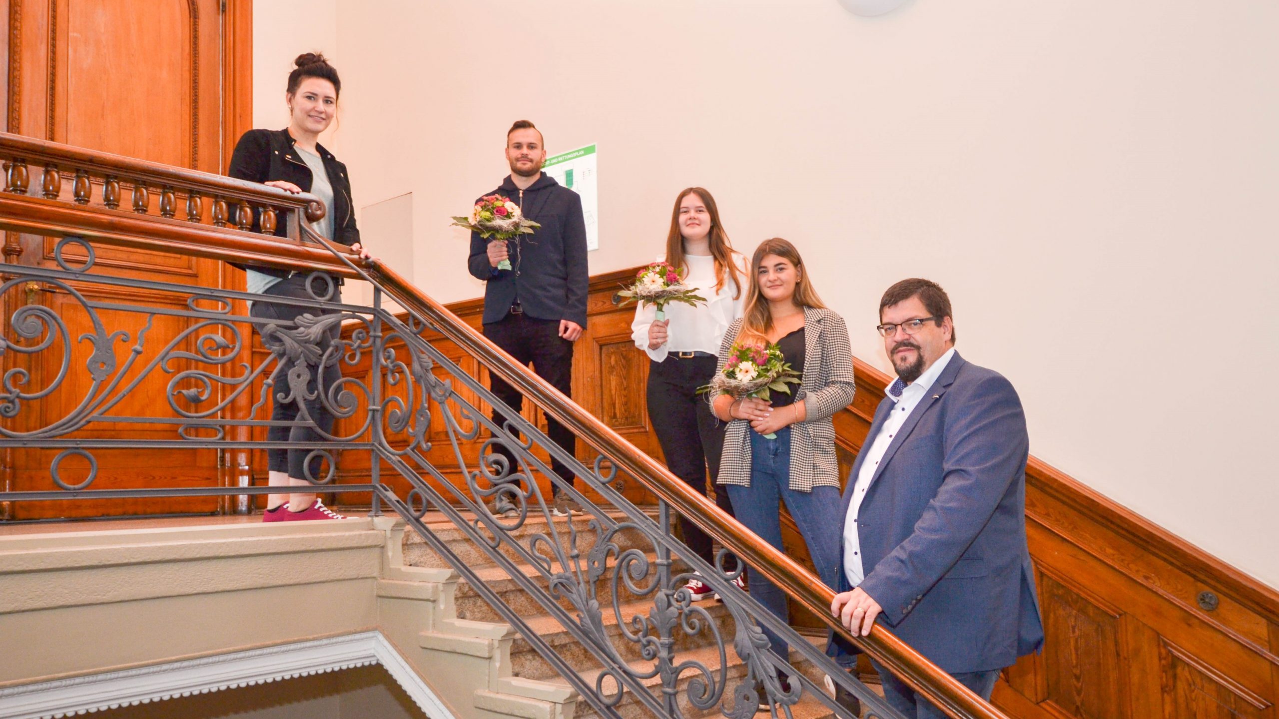 Heute ist ein großer Tag! Unsere neuen Azubis beginnen bei uns ihre Ausbildung zu Immobilienkaufleuten. Amélie Lumper, Vanessa Kubelka und Tom Kubitz werden drei Jahre lang alle Bereiche unseres Unternehmens kennenlernen und das Rüstzeug für diesen Beruf erhalten. Geschäftsführer Arne Myckert und Ausbilderin Lisa Gloger haben die Azubis heute begrüßt.