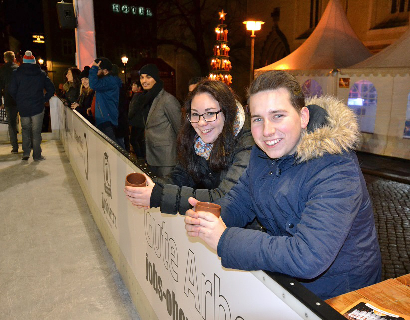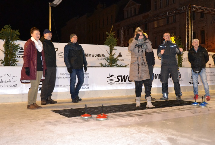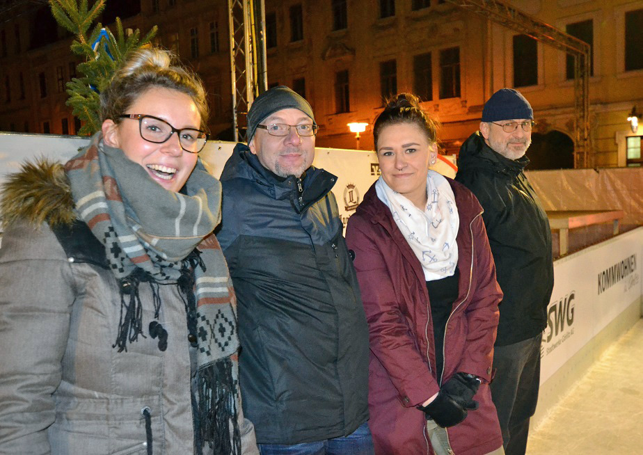 Wir haben uns aufs Glatteis begeben! Mitarbeiter von KommWohnen haben am Dienstag am Sponsorenturnier des Kulturservice teilgenommen: Lisa, Jörg, Lisa und Norbert (Foto links). Viele Spieler haben zum ersten Mal einen Eisstock in der Hand gehabt, auch die Mitarbeiter der fünf anderen Unternehmen wie SQS, Skan AG, Bürgel&Schulze und Volksbank-Raiffeisenbank. Zwei Stunden lang gab es viel Spaß für alle. Das Team vom Hausmeisterdienst Lukoschek hatte am Ende die Nase vorn und das Turnier gewonnen. Laut Kulturservice soll es im kommenden Jahr eine Neuauflage geben.