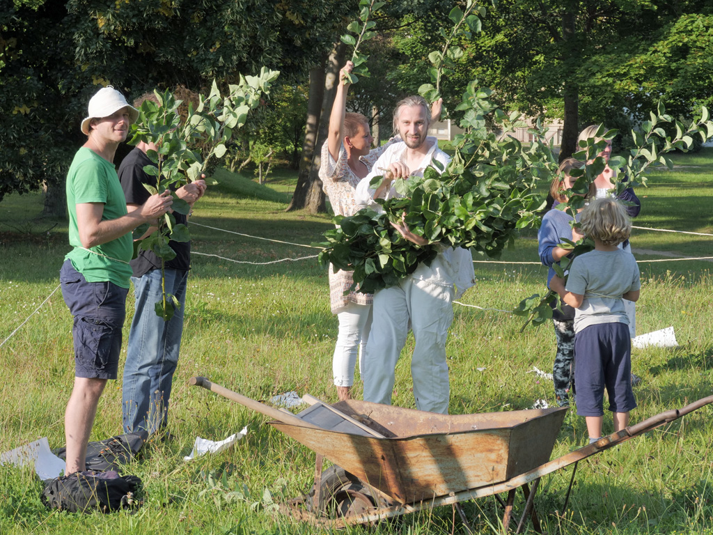 Wiese mal anders: An einem Wochenende wurde die Fläche mit unserer großen Ersatzbepflanzung an der Schlesischen Straße neulich zur Bühne. Der Görlitzer Künstler Sascha Röhricht führte dort im Rahmen der Aktion „950 neue Bäume für Görlitz“ eine öffentliche Performance durch. Diese setzte sich künstlerisch mit den über 30 Neupflanzungen auseinander und band auch das Publikum mit ein. So wurden aus den Zuschauern innerhalb der Kunstaktion weitere symbolische Bäume, berichtet Röhricht.