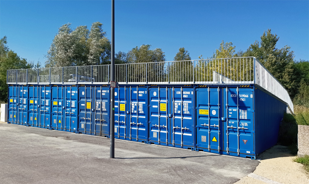 Auch zum Saisonende wird am Hafen Görlitz noch gebaut. Derzeit entsteht die Aussichtsterrasse auf dem Dach der blauen Lagercontainer. Die Firma Metallbau Adam baut dieser Tage die Geländer. Dann kommt noch eine zwölf Meter lange Bank über die volle Breite der sieben Container. Es wird sogar einen barrierefreien Zugang vom oberen Rundweg aus geben.