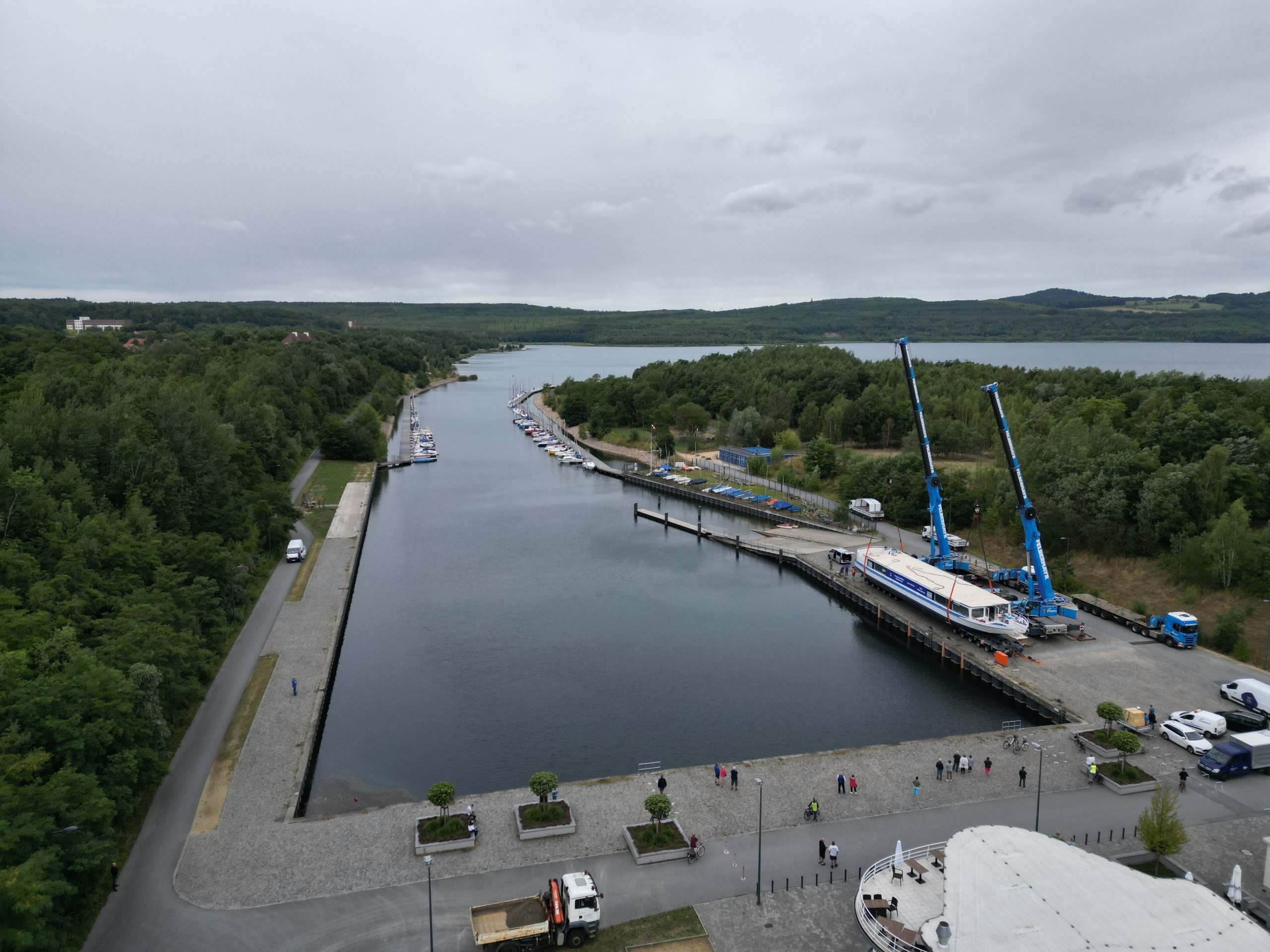 Zwischen der alten Heimat des Fahrgastschiffes und dem Berzdorfer See liegen einige Kilometer. Der Hennesee, auf dem das Schiff jahrelang unterwegs war, liegt im Sauerland nahe der Stadt Meschede. Dort war die damalige MS Hennesee bis 2022 als Ausflugsschiff im Einsatz. Von da ging es nach Mondorf bei Bonn. Dort machte die Lux-Werft das 1969 erbaute Schiff wieder flott und rüstete es auf einen Elektroantrieb um. Von Bonn ging es entlang des Rheins nach Duisburg weiter über Münster, Hannover bis nach Magdeburg. Hier musste das Schiff dann aus seiner Wohlfühlzone geholt werden und über Land transportiert werden.