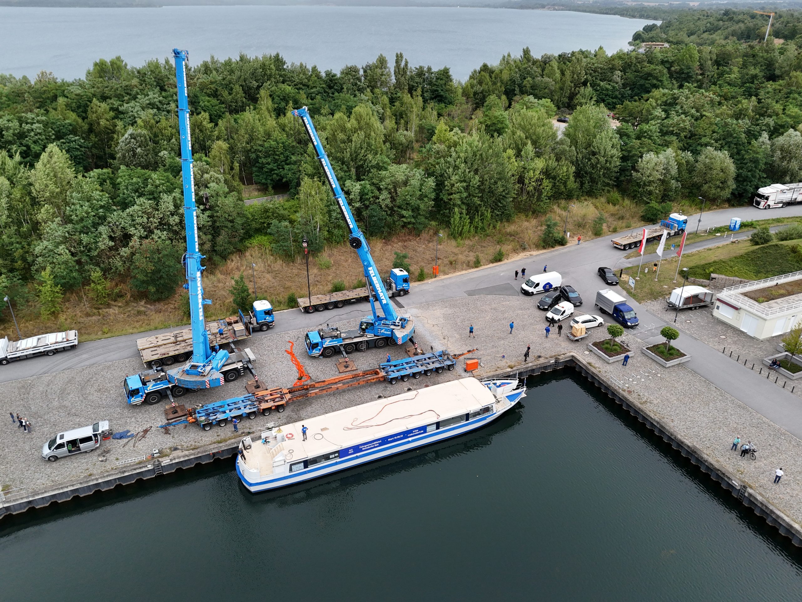 In den frühen Morgenstunden des vergangenen Mittwochs kam das neue Fahrgastschiff in seinem neuen Zuhause an. Das wird der Hafen Görlitz sein. Dort soll nun der Innenausbau folgen, ehe es dann am 19. August zur Jungfernfahrt auf dem Berzdorfer See kommt.