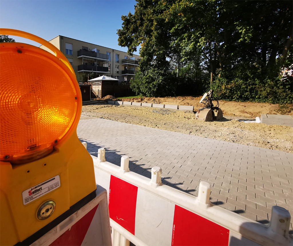 Versteckt im Herzen von Weinhübel ist eine neue Baustelle von uns gestartet. An der Jonas-Cohn-Straße bauen wir neue Parkplätze. Fünf Stück werden es nachher sein, die den Parkdruck auf der Straße mindern sollen. Laut Plan sind sie in der nächsten Woche fertig. Sie können dann bei uns gemietet werden über unser Büro Service&Parken.
