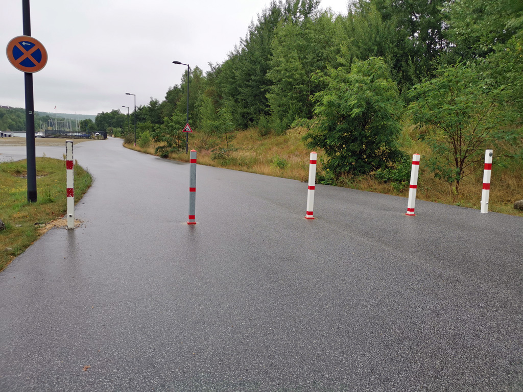 Andersherum können wir diese Poller auch nicht weglassen. Es zeigt sich seit Jahren leider immer wieder, dass im Hafengelände weder rücksichtsvoll genug gefahren noch geparkt wird, als dass Rettungswege immer frei wären und niemand gefährdet würde. Es ist also unumgänglich, Unbefugten mit Fahrzeug den Weg ins Hafengelände zu versperren.