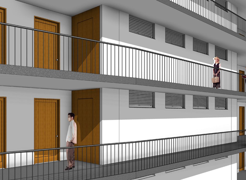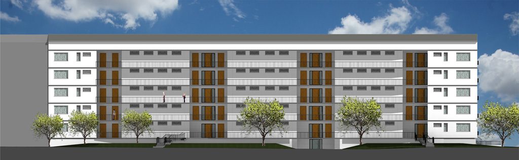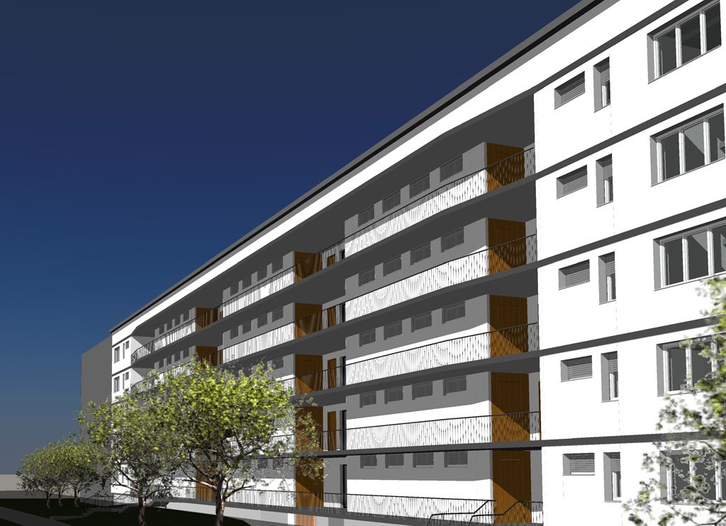 In Rauschwalde a very special project is starting this year. The block Arthur-Ullrich-Street 10 to 16 is completely renovated and gets a completely new look. Most noticeable will be the addition of arcades on all floors on the street side – a bit like Jonas-Cohn-Straße in Weinhübel, but further developed and improved. KommWohnen architect Alexander Sommer has developed a completely new, modern concept that makes living for seniors and families equally attractive. Criticisms of the “Görlitzer House” in Weinhübel – such as the view from the arcade into the apartments, the elevator tower in front of the house or the initially unprotected entrances in the attic – have been incorporated into the new variant and now have better solutions. For example, there are windows above head height and an inside elevator to the arcade. The now planned form and improvement of the “Görlitzer House” is to be known as the “Sommer-House“.
