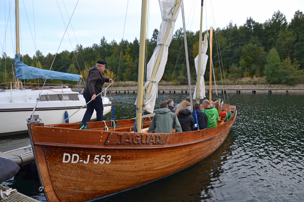 So ein Kutter ist ein geniales Boot. Nicht nur, dass man mit dem Zweimaster schnell segeln kann. Man kann damit auch rudern. Platz für bis zu zehn Ruderer bietet der Holzkutter „Jaguar“ des Vereins esta e.V., der Evangelischen Stadtjugendarbeit. „Die Idee kam uns im Frühjahr dieses Jahres“, sagt Bernd Förster vom Verein. Gesegelt wird seit Jahren mit dem Kutter, unzählige Kinder und Jugendliche haben schon schöne Stunden auf dem Berzdorfer See verbracht. „Aber dann fiel uns ein, dass wir ja auch Ruder zu dem Boot haben.“ Weil einer der „Segelchefs“ des Vereins beruflich immer mehr eingespannt ist und wenig Zeit zum Segeln hat, übernahm Bernd Förster die Regie fürs Rudern. „Ich hab dann schnell noch Fußanschläge gebaut. Die waren ja noch nicht da.“ Und los ging es.