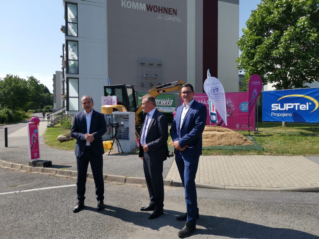 Der Ausbau des Gigabit-Netzes in Görlitz nimmt Konturen an. Zusammen mit dem Görlitzer Oberbürgermeister Octavian Ursu, Verantwortlichen der Telekom, der Firmen Herwig und Suptel, des Staatsministerium Wirtschaft, Arbeit und Verkehr, der Digitalagentur Sachsen, der Genos und von F.T. Immobilien erfolgte der symbolische Spatenstich zum Glasfaserausbau in Königshufen. Doch auch in den Stadtteilen Südstadt, Weinhübel, Rauschwalde, Biesnitz, Klingewalde und Nikolaivorstadt sollen bis zu 13.500 Haushalte das Glasfasernetz nutzen können.