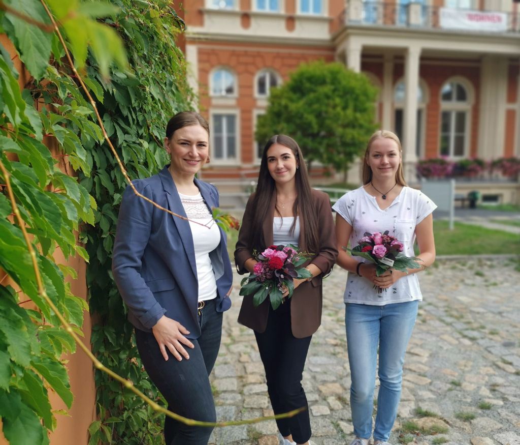 Heute haben unsere beiden neuen Auszubildenden einen großen Tag. Sie beginnen ihre Berufsausbildung zur Immobilienkauffrau. Gina-Maria Vetter (Mitte) und Tina Lindemann (rechts) wurden von der Geschäftsführung, allen Kollegen und natürlich Ausbilderin Lisa Gloger (links) herzlich begrüßt.