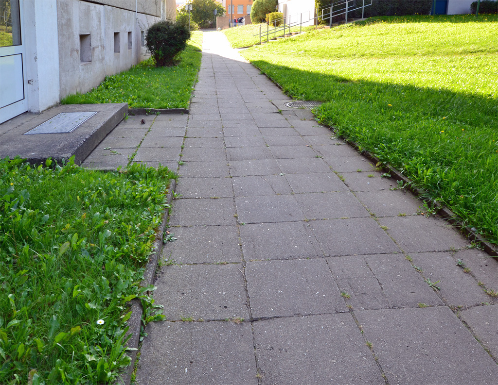 Jetzt hat die Firma Görlitzer Gleis- und Tiefbau alles repariert. Die alten Gehwegplatten sind ausgetauscht, alles ist wieder eben. Jetzt muss nur noch das Gras über die Sache wachsen.