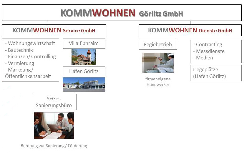 - Erbringung immobilienwirtschaftlicher Leistungen, insbesondere für die KommWohnen Görlitz GmbH und die Stadt Görlitz