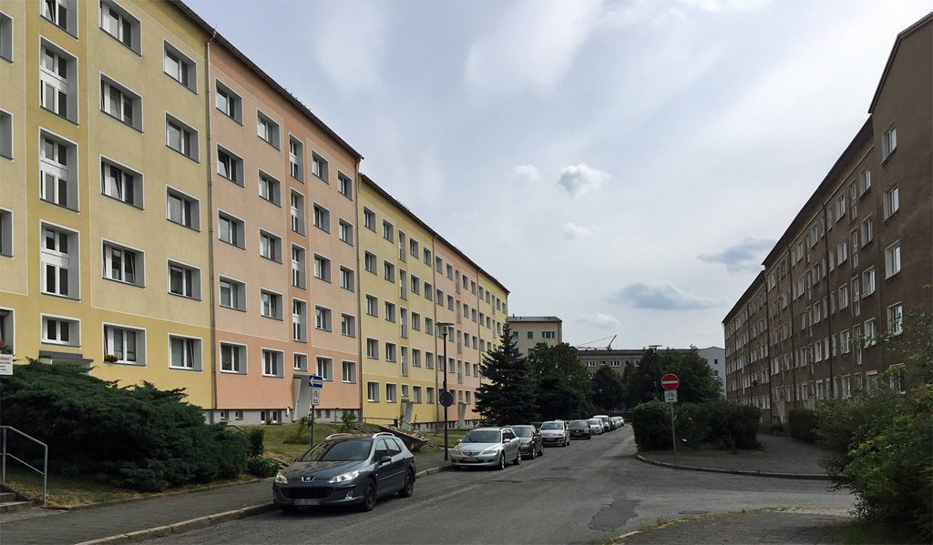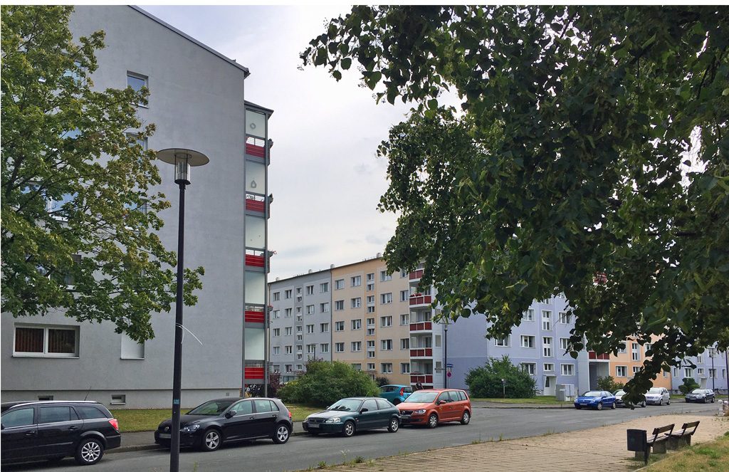 Straßenweise sind hier auch Einfamilienhäuser und Reihenhäuser aus früheren Jahrzehnten zu finden. Parkplätze stehen in ausreichender Zahl zur Verfügung.